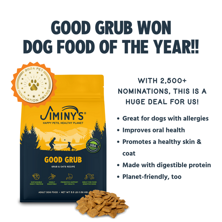 Jiminy's Good Grub won Dog Food of the Year in the 2024 Pet Innovation Awards! Learn more here.
